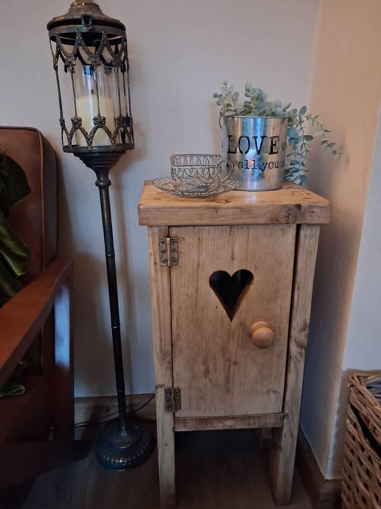 this handsome piece could be used as a pot plant stand or a lamp stand or to simply enhance the decor of any room. Made from reclaimed scaffold boards before being sanded then waxed in clear and dark wax to give an aged vintage look. the hinges are reclaimed from old school cupboards and the handle is a reclaimed pine bun handle.