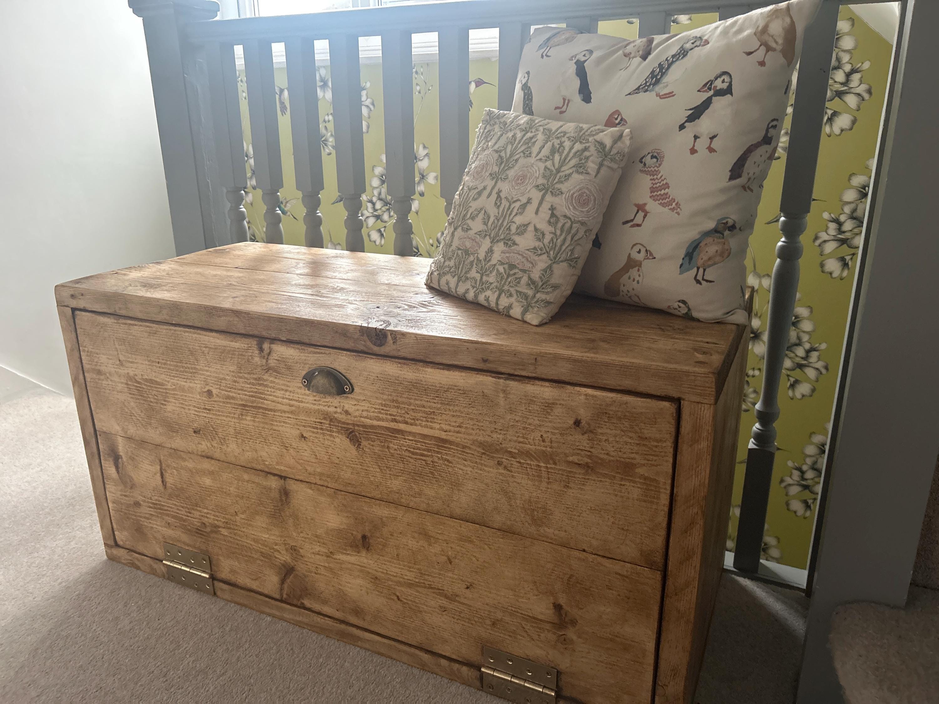 Lovely Handmade piece!! Order was delayed due to sickness, but Graeme was speedy in his replies when contacted regarding updates. Sadly the items magnetic door catch was broken in pieces when arrived, but easily resolved as I bought a replacement in the local DIY store for around £5 (so no big deal) Also not that this was an issue for me, but the boot/shoe box was made from 2 lengths of wide boards rather than the 4 slimmer ones in the pics, just in case visually you would prefer the smaller pieces of wood.